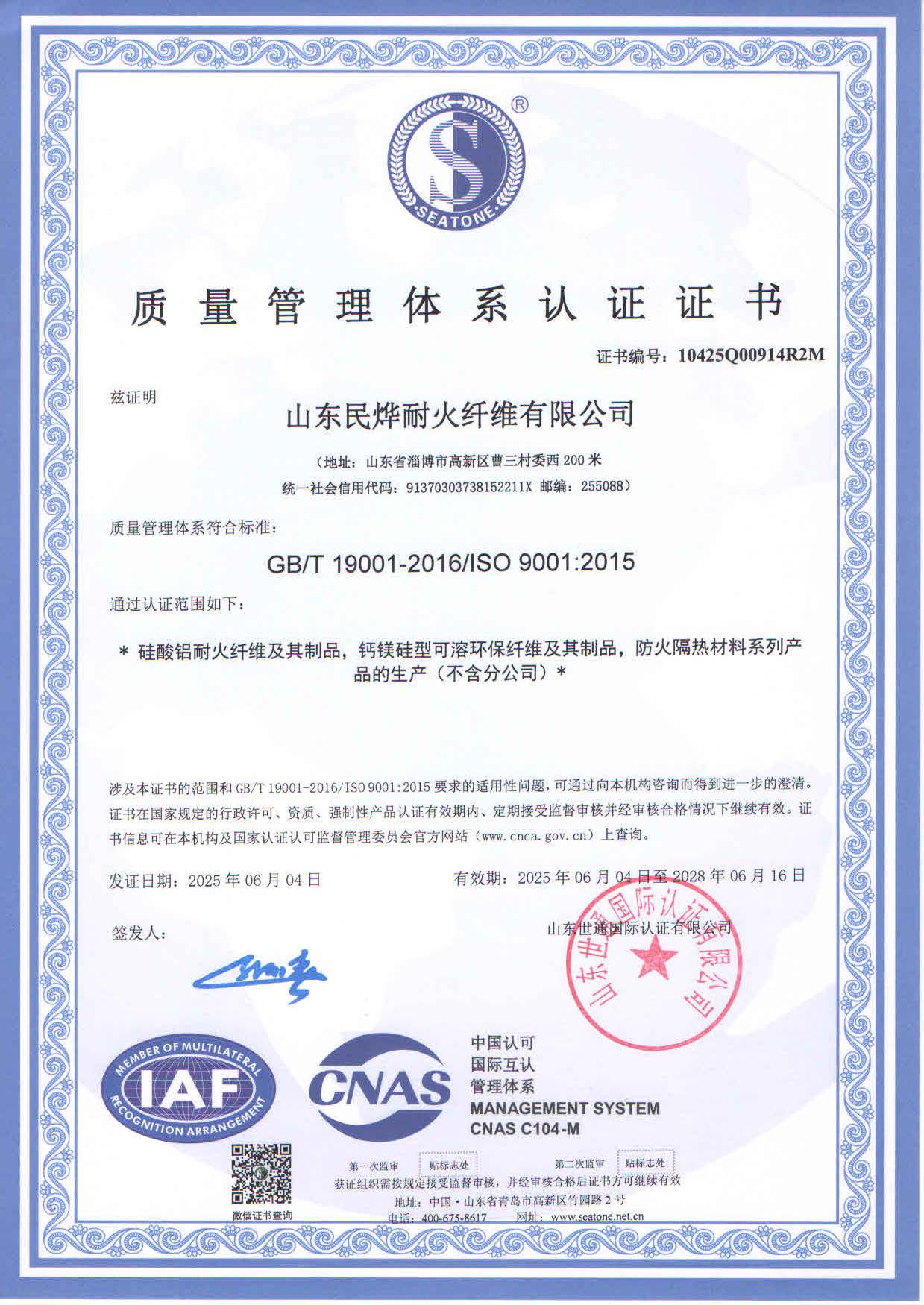 • 2025年質(zhì)量體系認證證書
